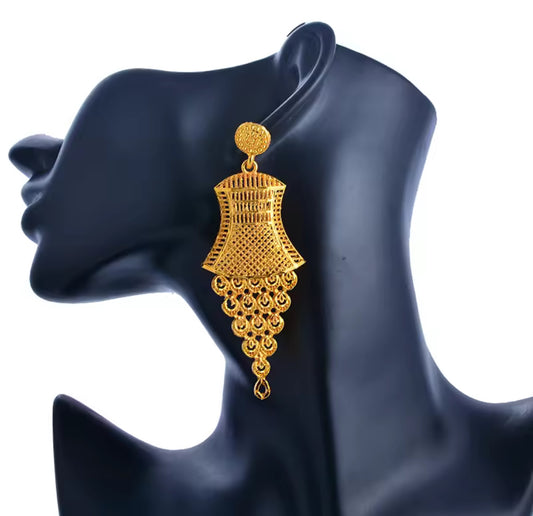 Gold Statement Dangle Earrings – Bell Drop Design