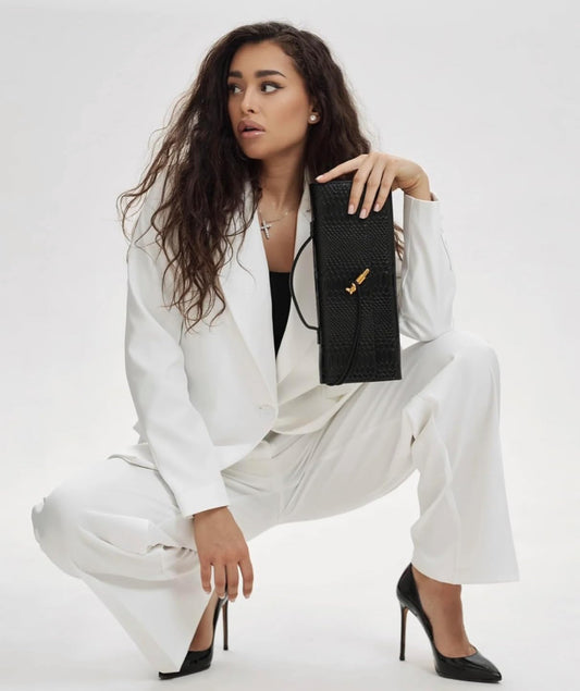 Black Croc Shoulder Purse / Clutch