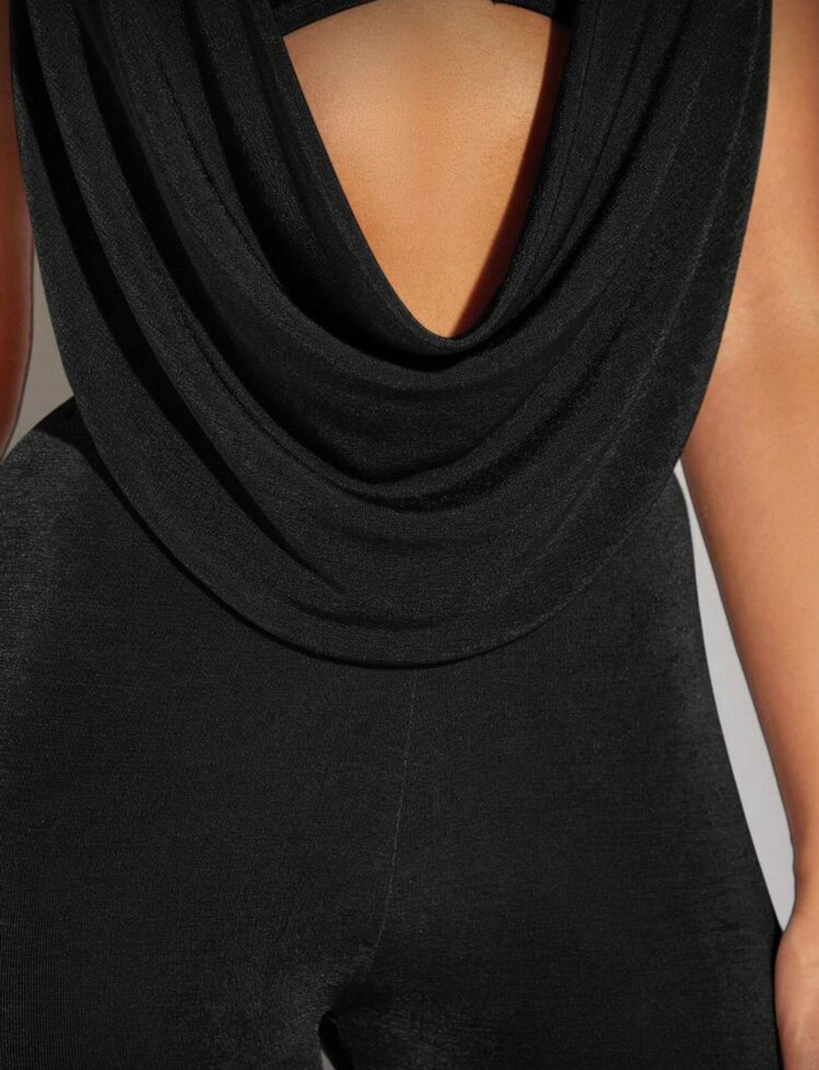 Step out in confidence with the Goodies Set, a sultry two-piece look that’s sleek, daring, and unforgettable. Featuring a plunging draped halter top with a cutout detail and matching high-waist fitted pants, this set is designed to hug your curves in all the right places. The open back tie detail adds the perfect finishing touch for a bold yet chic vibe. Pair it with metallic heels and a mini bag to complete the look.